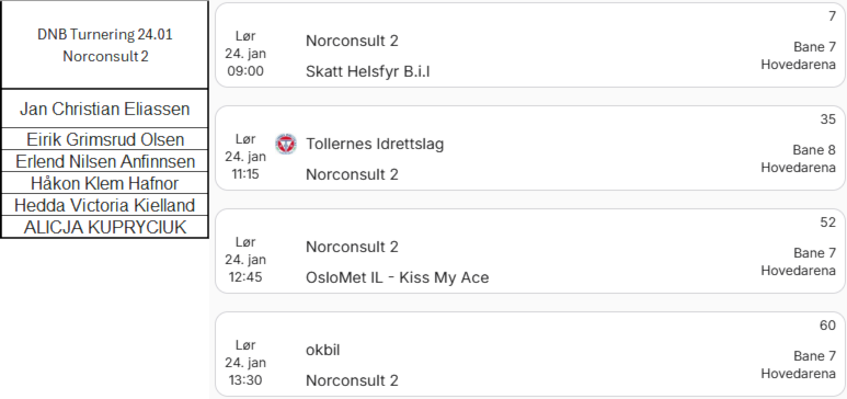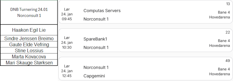 Arrangementet blir oppdatert med status om det er meldt på lag, eller hvor mange.